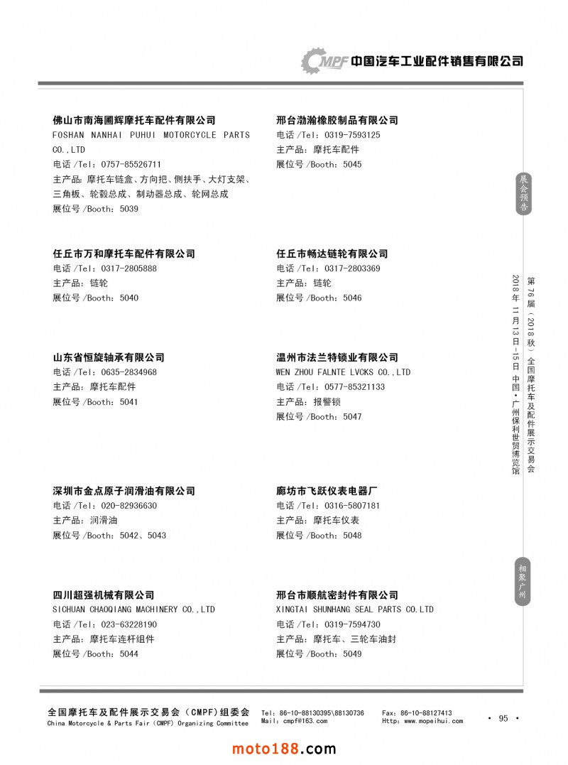 內(nèi)95 第75屆(2018春)全國摩托車及配件展示交易會-重慶站參展企業(yè)信息