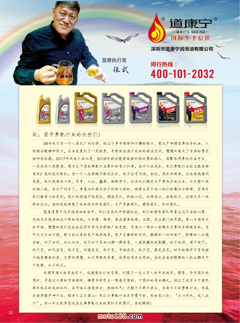 重慶展會我們的展位在5006,歡迎參會的企業(yè)來我們展位領(lǐng)取雜志和《全國摩配市場外貿(mào)指南》,同時也希望廣大的參展企業(yè),能在會上有一個較好的收獲,春天播種希望,秋天收獲成功。