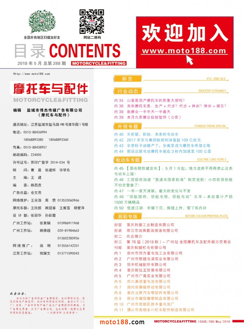 2018.5月《摩托車/電動車與配件》雜志,歡迎大家閱讀