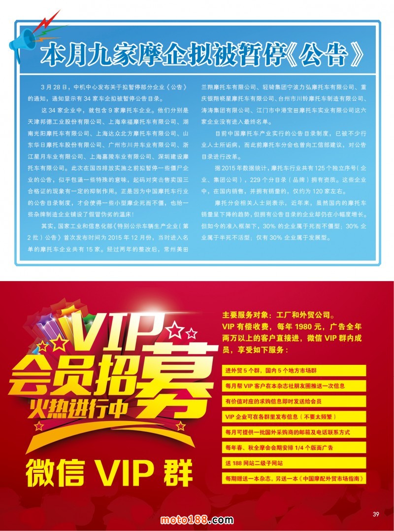 2018.5月《摩托車(chē)/電動(dòng)車(chē)與配件》雜志,歡迎大家閱讀日期:2018-04-25 點(diǎn)擊:1899 查看原圖 全部展開(kāi)![]() ![]() ![]() 內(nèi)39 本月九家摩企擬被暫?!豆妗?br />