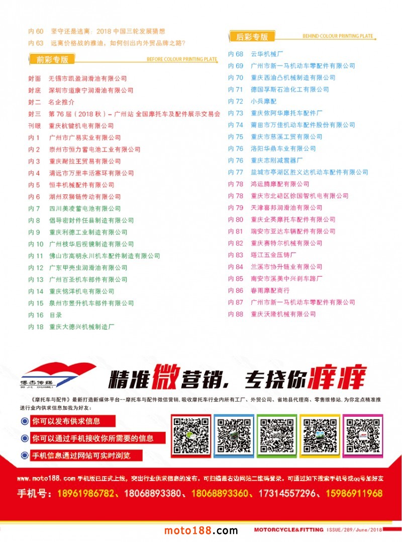 從今年的6月到10月上旬,我們還將對(duì)16年編撰的《摩配華南市場(chǎng)指南》進(jìn)行升級(jí),中英文雙語(yǔ)出版,新版本將在下半年第76屆廣州全國(guó)摩托車及配件展示交易會(huì)首發(fā);并在廣州重慶摩配市場(chǎng)全面派送;在廣州福星、松南市場(chǎng)門口、及白云210/002/607三個(gè)檔口常年設(shè)立發(fā)行窗口;發(fā)行至廣州、重慶、江浙的主要廠家,目前收集整理、核對(duì)校正信息,編排翻譯的工作正在進(jìn)行之中,需要在最新《華南市場(chǎng)指南》升級(jí)版做宣傳的企業(yè),請(qǐng)和我們以及各地的工作站人員聯(lián)絡(luò)。
