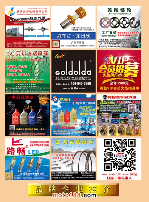 從今年的6月到10月上旬,我們還將對16年編撰的《摩配華南市場指南》進行升級,中英文雙語出版,新版本將在下半年第76屆廣州全國摩托車及配件展示交易會首發(fā);并在廣州重慶摩配市場全面派送;在廣州福星、松南市場門口、及白云210/002/607三個檔口常年設立發(fā)行窗口;發(fā)行至廣州、重慶、江浙的主要廠家,目前收集整理、核對校正信息,編排翻譯的工作正在進行之中,需要在最新《華南市場指南》升級版做宣傳的企業(yè),請和我們以及各地的工作站人員聯(lián)絡。