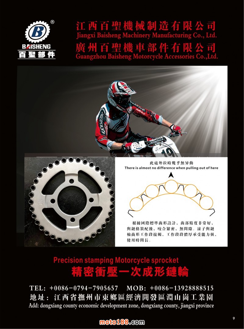 2018.10月《摩托車/電動(dòng)車與配件》雜志,歡迎大家閱讀日期:2018-09-28 點(diǎn)擊:1547 查看原圖 全部展開![]() ![]() ![]() 內(nèi)9 廣州百圣機(jī)車部件有限公司