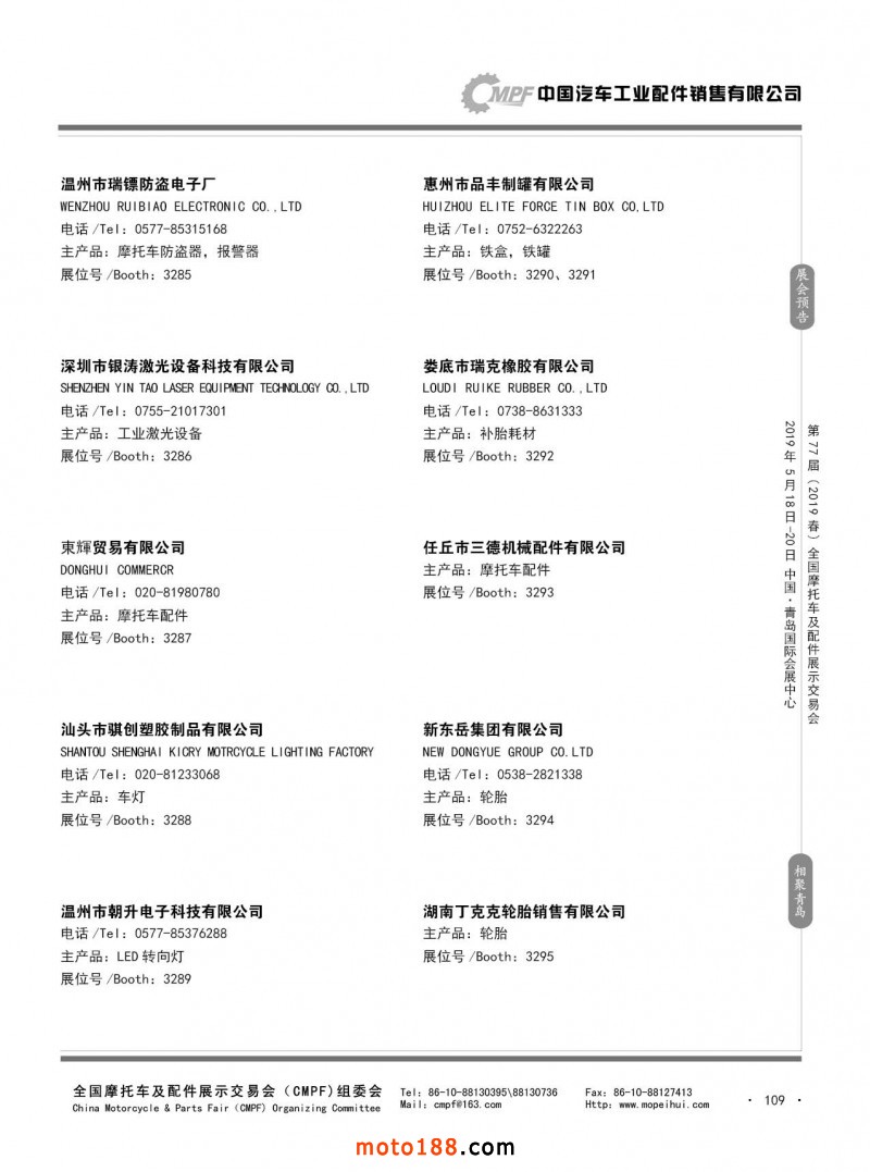內(nèi)109 第76屆(2018秋)全國摩托車及配件展示交易會-廣州站參展企業(yè)信息