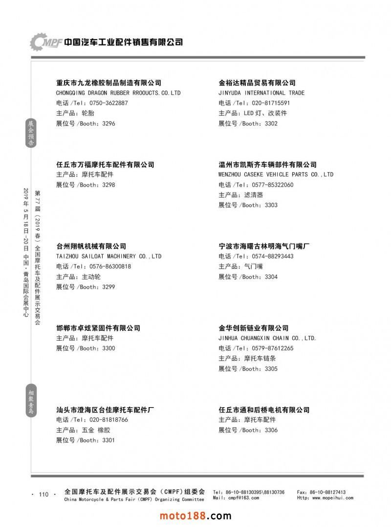 內(nèi)110 第76屆(2018秋)全國(guó)摩托車及配件展示交易會(huì)-廣州站參展企業(yè)信息