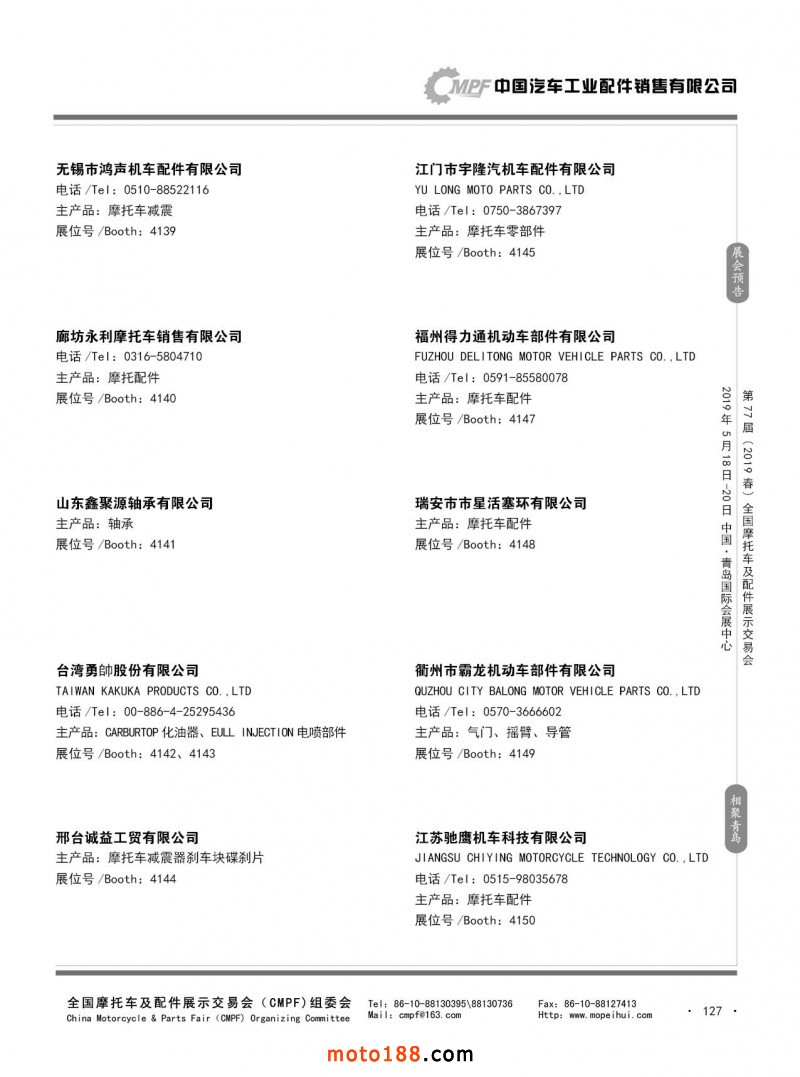 內(nèi)127 第76屆(2018秋)全國摩托車及配件展示交易會(huì)-廣州站參展企業(yè)信息