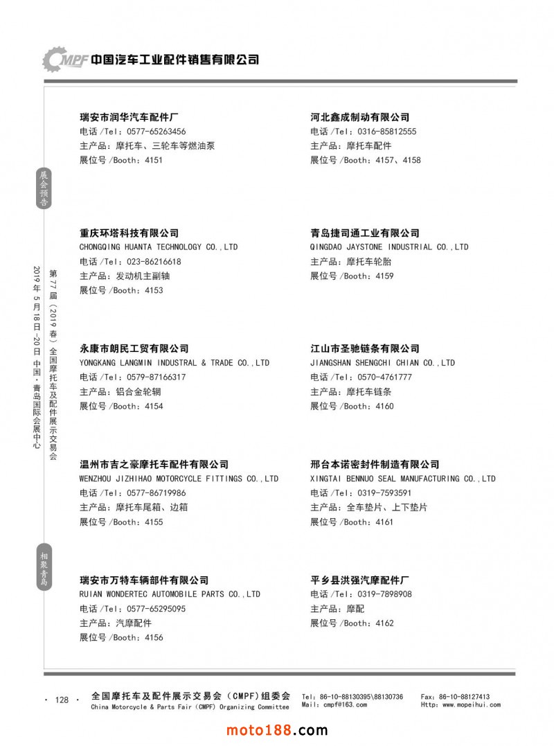 內(nèi)127 第76屆(2018秋)全國摩托車及配件展示交易會(huì)-廣州站參展企業(yè)信息
