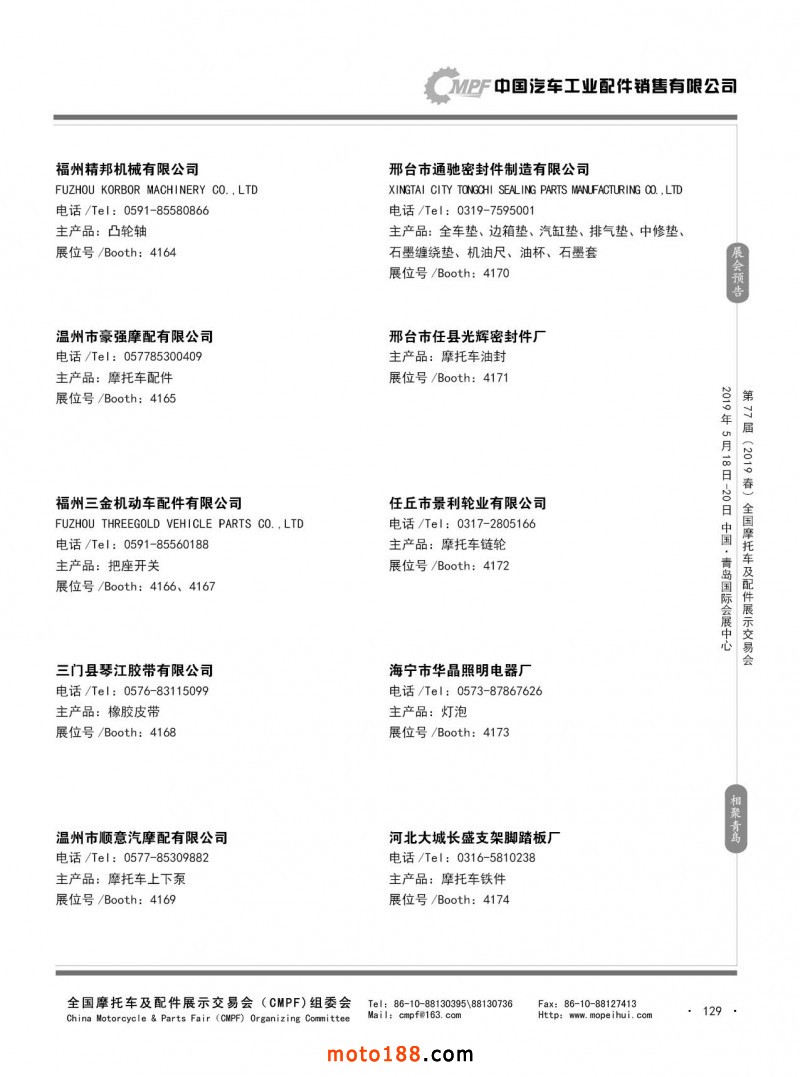 內(nèi)129 第76屆(2018秋)全國摩托車及配件展示交易會-廣州站參展企業(yè)信息