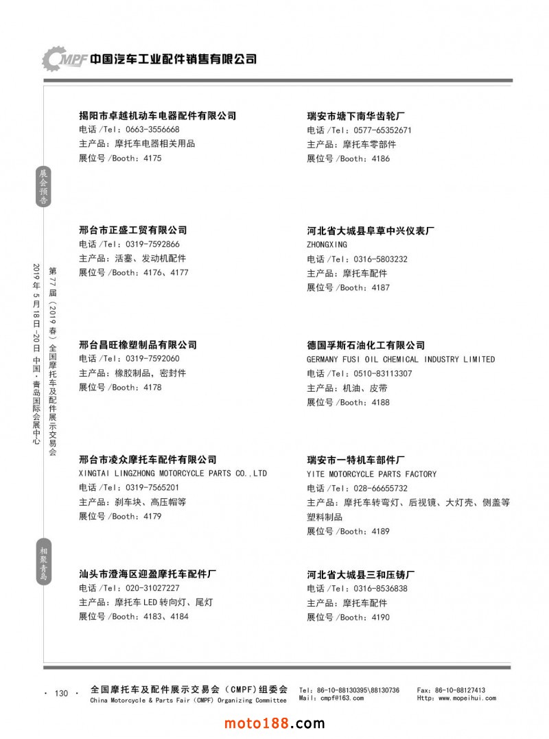 內(nèi)130 第76屆(2018秋)全國(guó)摩托車(chē)及配件展示交易會(huì)-廣州站參展企業(yè)信息