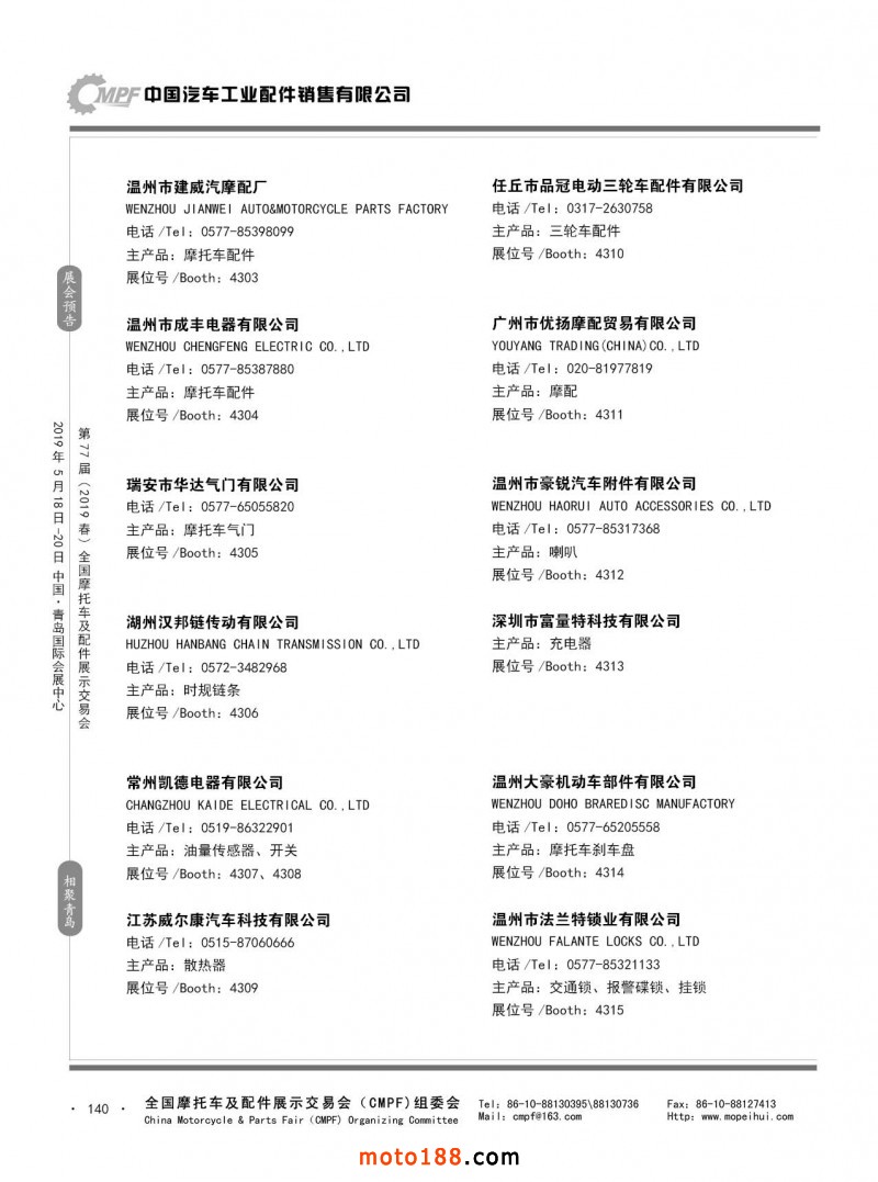 內(nèi)140 第76屆(2018秋)全國摩托車及配件展示交易會-廣州站參展企業(yè)信息