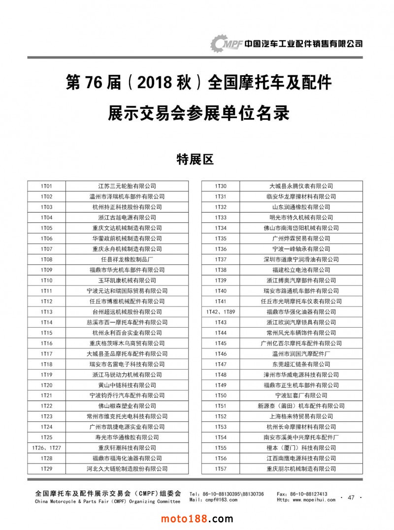 內(nèi)47 第76屆(2018秋)全國(guó)摩托車(chē)及配件展示交易會(huì)-廣州站參展單位名錄