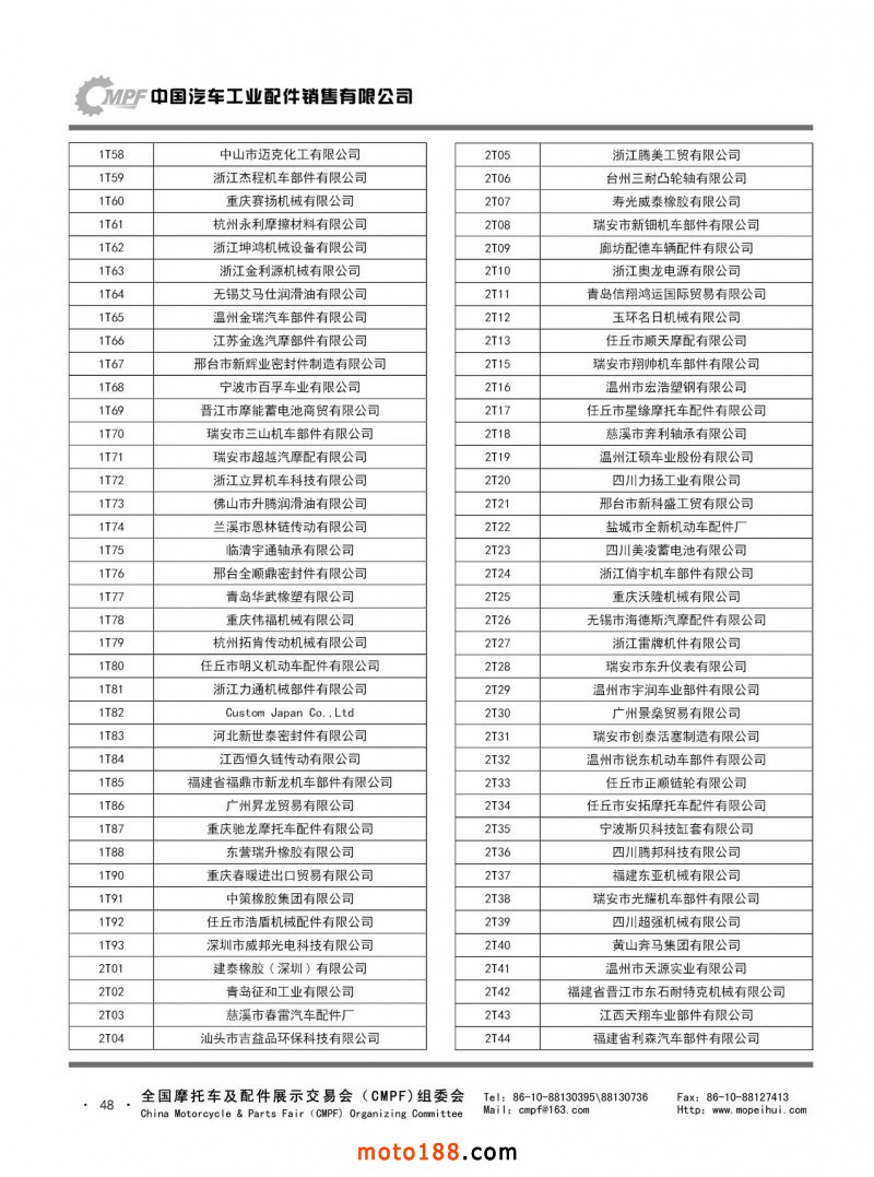 內(nèi)48 第76屆(2018秋)全國摩托車及配件展示交易會-廣州站參展單位名錄第76屆(2018秋)全國摩托車及配件展示交易會-廣州站參展單位名錄