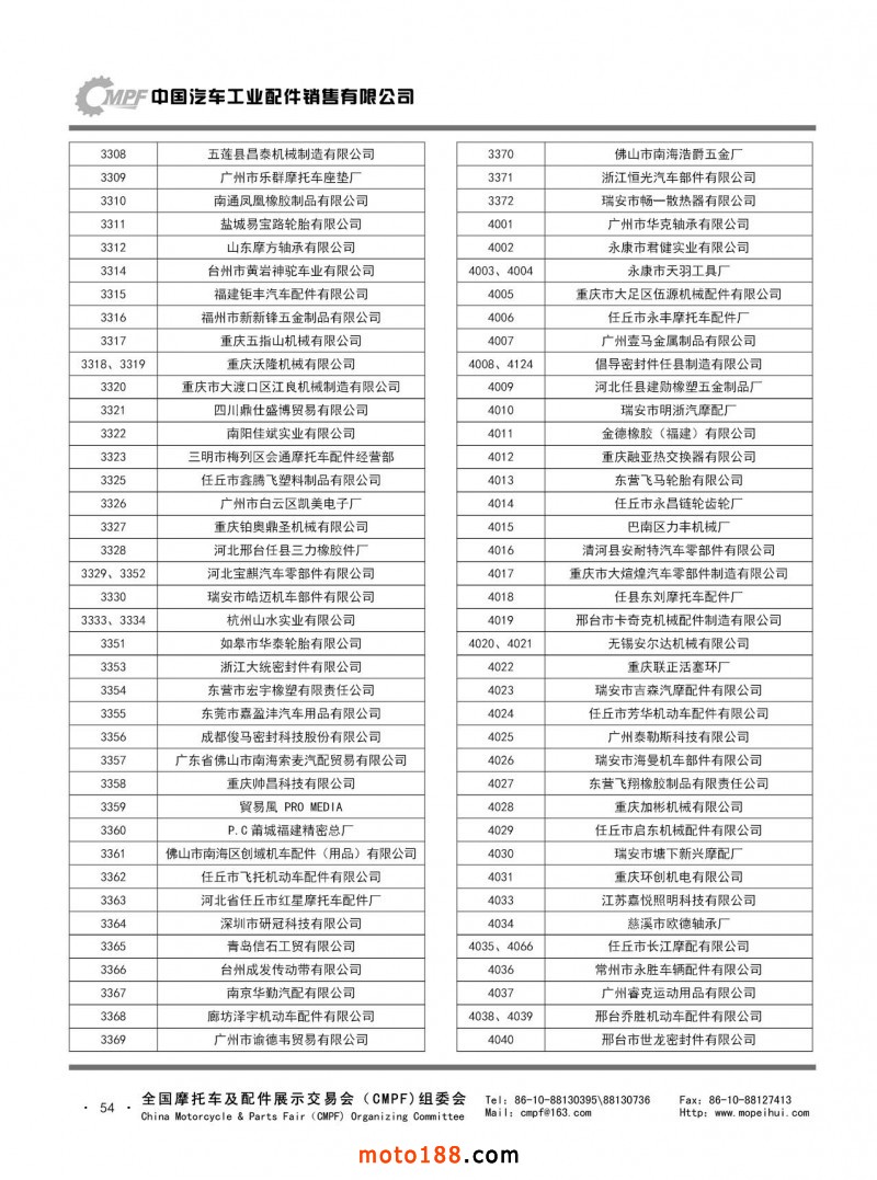 內(nèi)54 第76屆(2018秋)全國摩托車及配件展示交易會-廣州站參展單位名錄第76屆(2018秋)全國摩托車及配件展示交易會-廣州站參展單位名錄