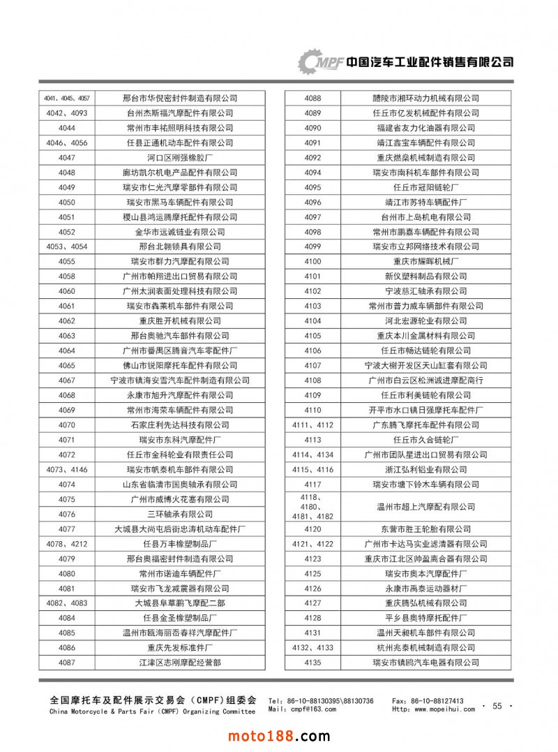 內(nèi)55 第76屆(2018秋)全國摩托車及配件展示交易會-廣州站參展單位名錄第76屆(2018秋)全國摩托車及配件展示交易會-廣州站參展單位名錄