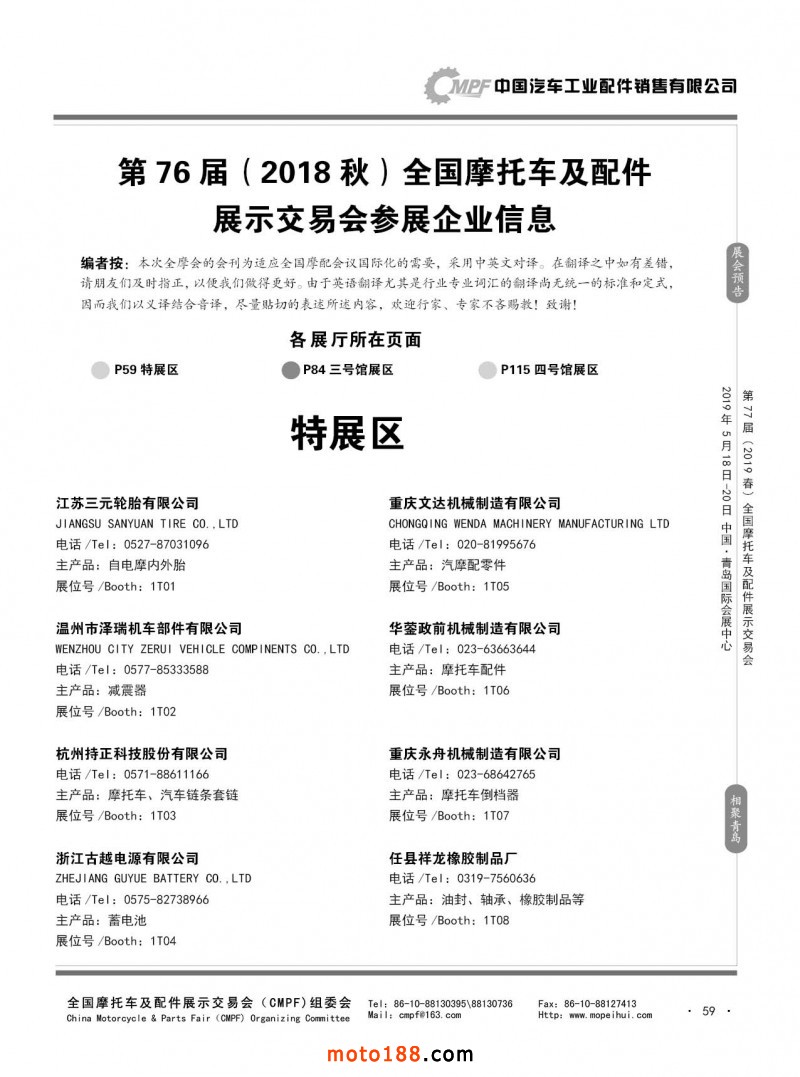 內(nèi)59 第76屆(2018秋)全國摩托車及配件展示交易會(huì)-廣州站參展企業(yè)信息