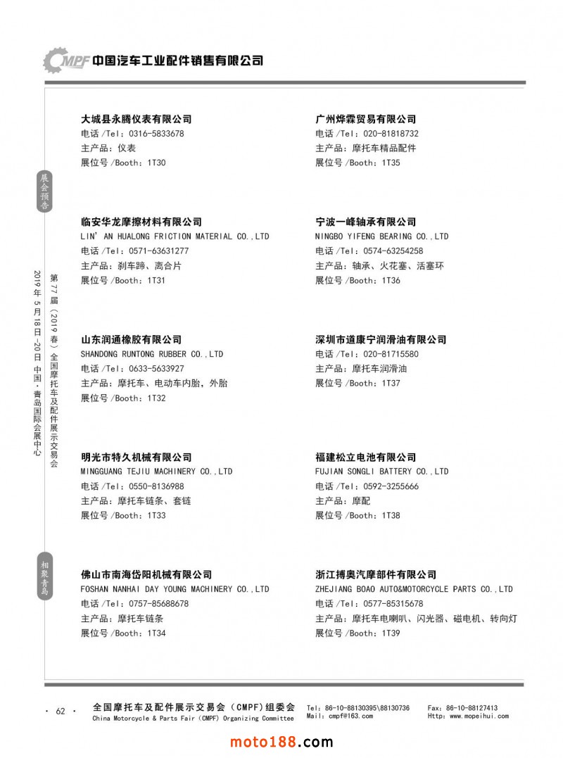 內(nèi)62 第76屆(2018秋)全國摩托車及配件展示交易會-廣州站參展企業(yè)信息