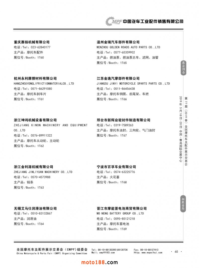 內(nèi)65 第76屆(2018秋)全國(guó)摩托車(chē)及配件展示交易會(huì)-廣州站參展企業(yè)信息