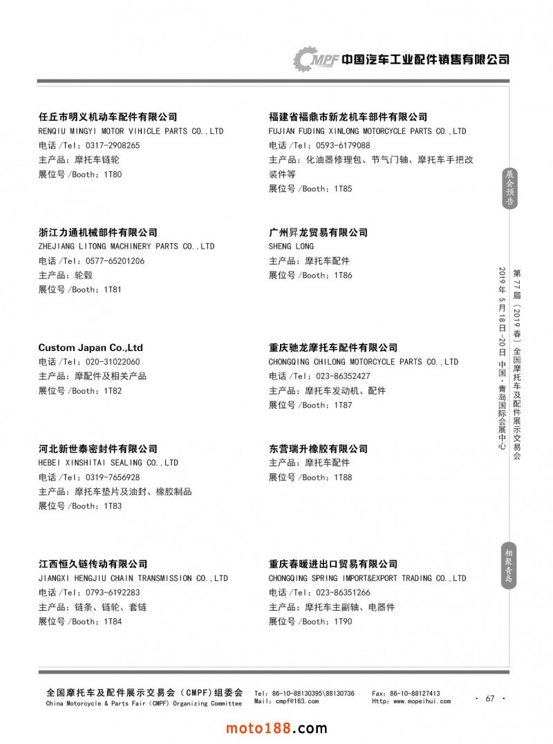 內(nèi)67 第76屆(2018秋)全國摩托車及配件展示交易會-廣州站參展企業(yè)信息