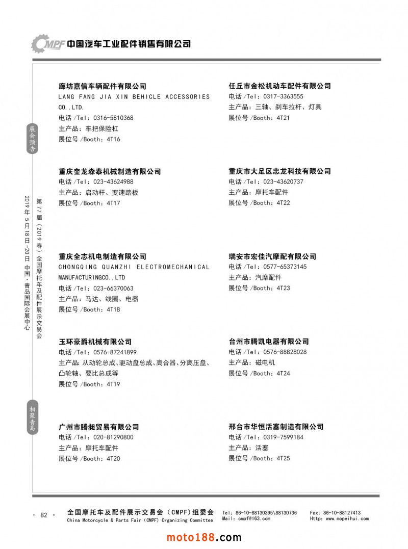 內(nèi)82 第76屆(2018秋)全國(guó)摩托車(chē)及配件展示交易會(huì)-廣州站參展企業(yè)信息