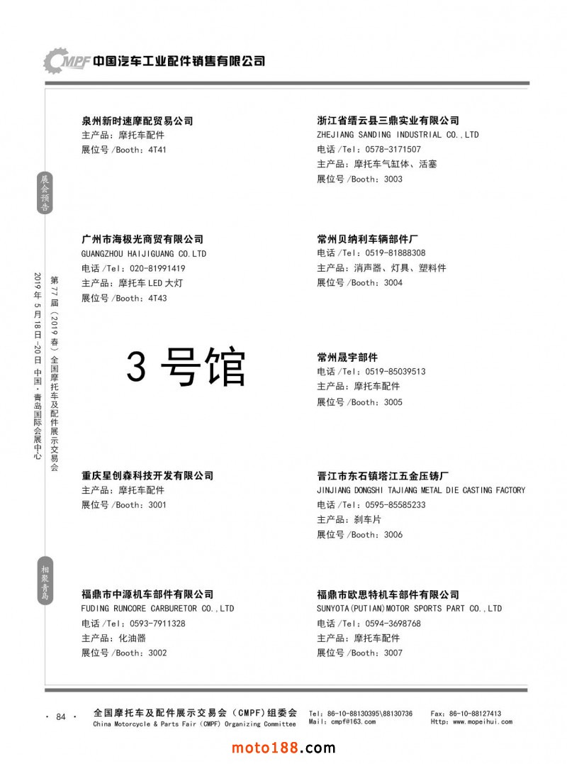 內(nèi)84 第76屆(2018秋)全國摩托車及配件展示交易會-廣州站參展企業(yè)信息