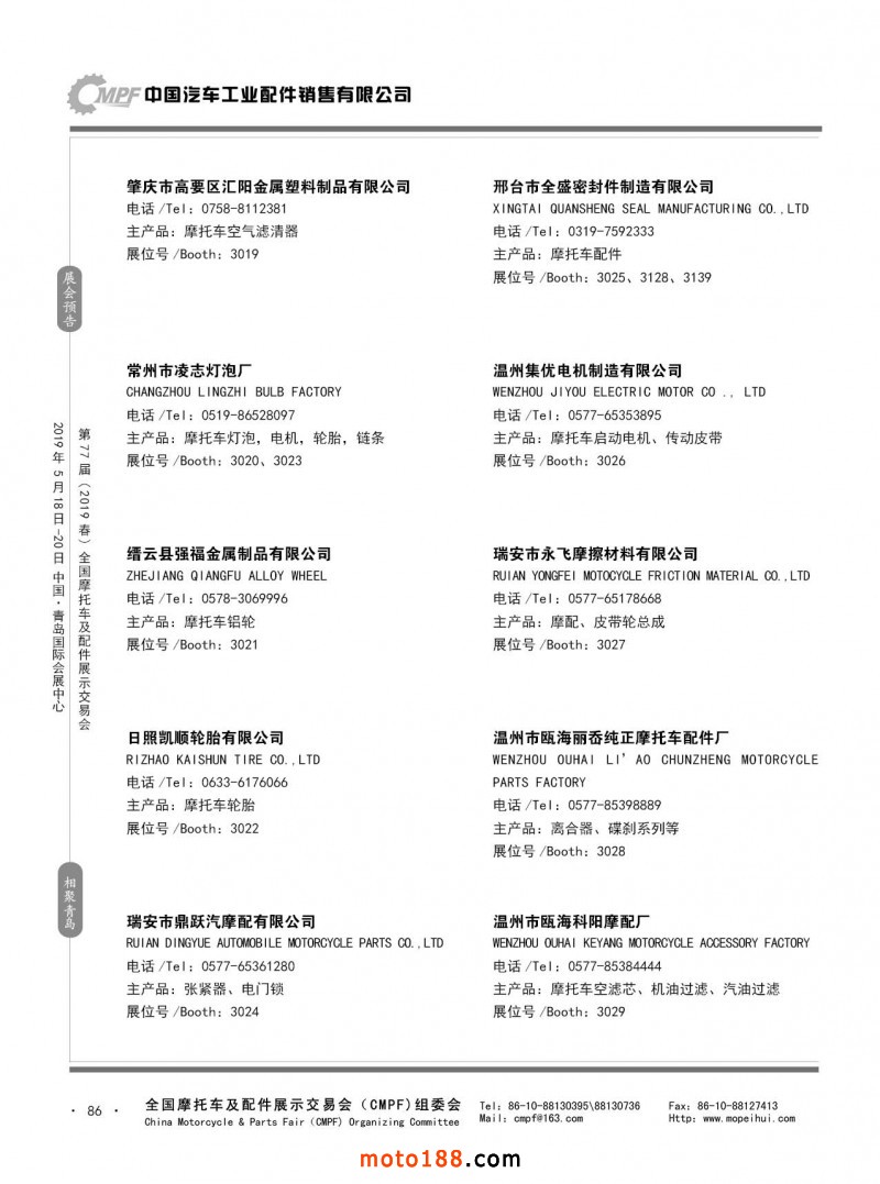 內(nèi)86 第76屆(2018秋)全國摩托車及配件展示交易會-廣州站參展企業(yè)信息