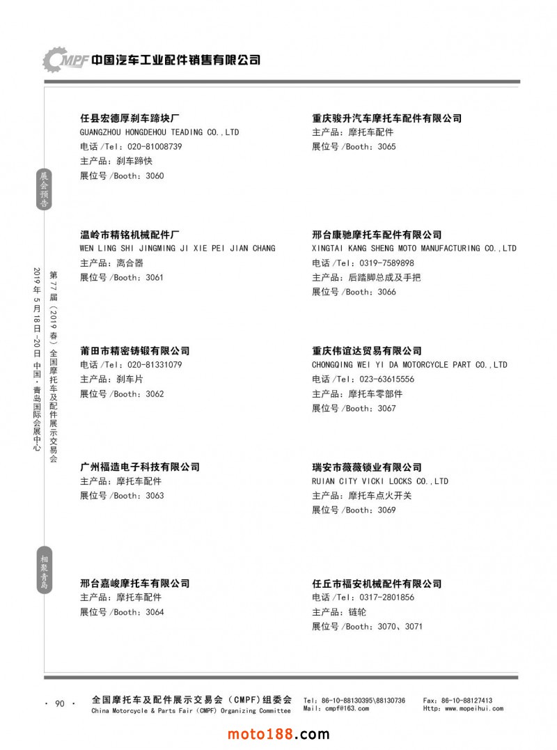 內(nèi)90 第76屆(2018秋)全國摩托車及配件展示交易會(huì)-廣州站參展企業(yè)信息