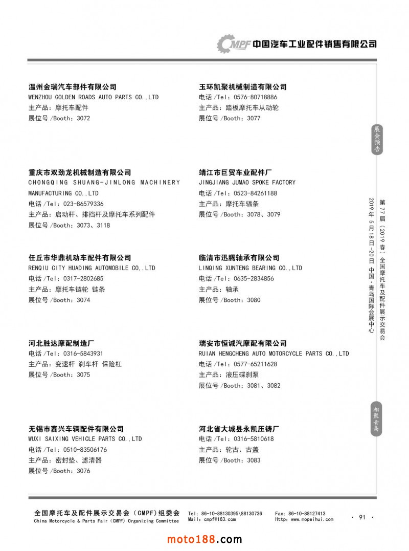 內(nèi)91 第76屆(2018秋)全國摩托車及配件展示交易會-廣州站參展企業(yè)信息