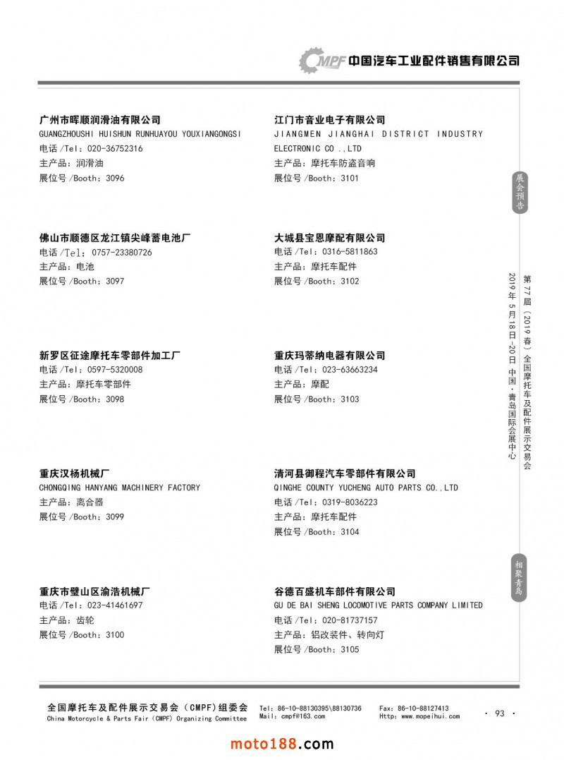 內(nèi)93 第76屆(2018秋)全國摩托車及配件展示交易會-廣州站參展企業(yè)信息