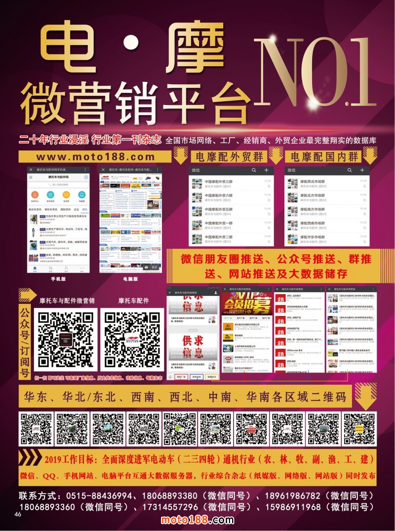 《摩托車與配件》(正在考慮是否變更為《電·摩配件》)不僅服務(wù)于摩配業(yè)之外,將重點(diǎn)增加電動(dòng)車業(yè)(二、三、四輪)的信息服務(wù);同時(shí)增加小型通機(jī)內(nèi)容(涉及工、農(nóng)、林、牧、副、漁、建等產(chǎn)業(yè))信息服務(wù);壓縮出刊期數(shù),適當(dāng)減少?gòu)V告的版面,突出雜志的內(nèi)容,增加原創(chuàng)內(nèi)容,增加可閱讀性,使雜志形成一定的風(fēng)格,將雜志辦成典藏版的精品,每期都有收藏價(jià)值;改變現(xiàn)有發(fā)行模式,電子版將發(fā)送至每一個(gè)好友;紙質(zhì)版實(shí)行精準(zhǔn)投放,有償發(fā)行,直達(dá)目標(biāo)受眾,具體為每個(gè)市場(chǎng)的發(fā)行,按我們提供的名單,由發(fā)行代理送雜志上門,我們按數(shù)量直接支付現(xiàn)金作為發(fā)行費(fèi)。權(quán)威性、收藏性、獨(dú)特性、可讀性這是明年雜志必須具備的特點(diǎn)。明年雜志特殊版面的征集工作已經(jīng)開(kāi)始,壓縮期數(shù)后,特定版面的數(shù)量將減少,先定先得。