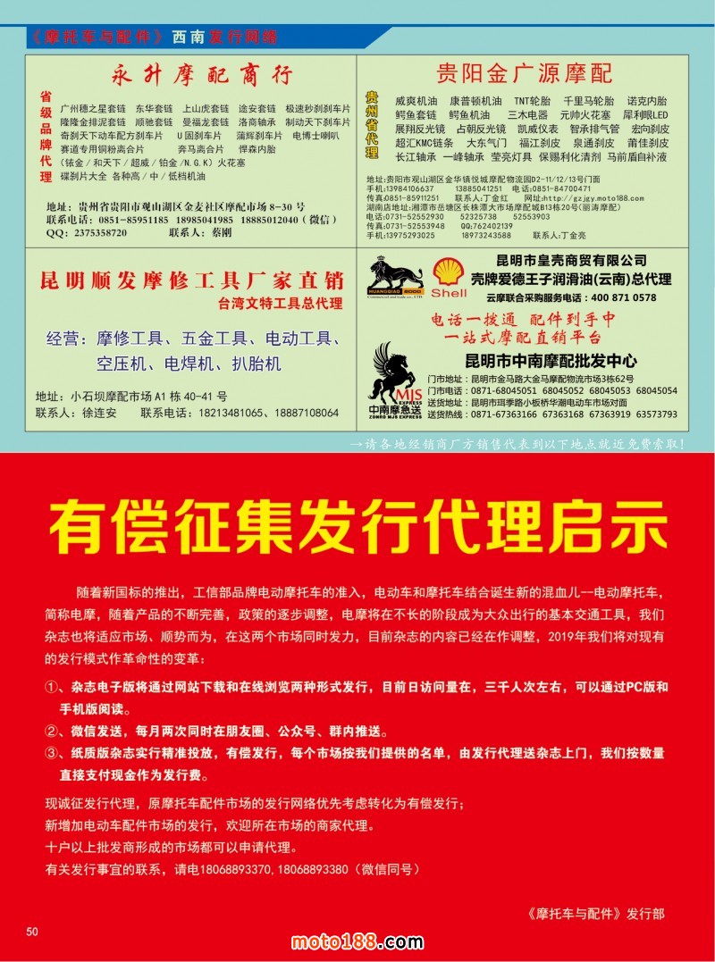 《摩托車與配件》(正在考慮是否變更為《電·摩配件》)不僅服務(wù)于摩配業(yè)之外,將重點增加電動車業(yè)(二、三、四輪)的信息服務(wù);同時增加小型通機內(nèi)容(涉及工、農(nóng)、林、牧、副、漁、建等產(chǎn)業(yè))信息服務(wù);壓縮出刊期數(shù),適當(dāng)減少廣告的版面,突出雜志的內(nèi)容,增加原創(chuàng)內(nèi)容,增加可閱讀性,使雜志形成一定的風(fēng)格,將雜志辦成典藏版的精品,每期都有收藏價值;改變現(xiàn)有發(fā)行模式,電子版將發(fā)送至每一個好友;紙質(zhì)版實行精準(zhǔn)投放,有償發(fā)行,直達目標(biāo)受眾,具體為每個市場的發(fā)行,按我們提供的名單,由發(fā)行代理送雜志上門,我們按數(shù)量直接支付現(xiàn)金作為發(fā)行費。權(quán)威性、收藏性、獨特性、可讀性這是明年雜志必須具備的特點。明年雜志特殊版面的征集工作已經(jīng)開始,壓縮期數(shù)后,特定版面的數(shù)量將減少,先定先得。