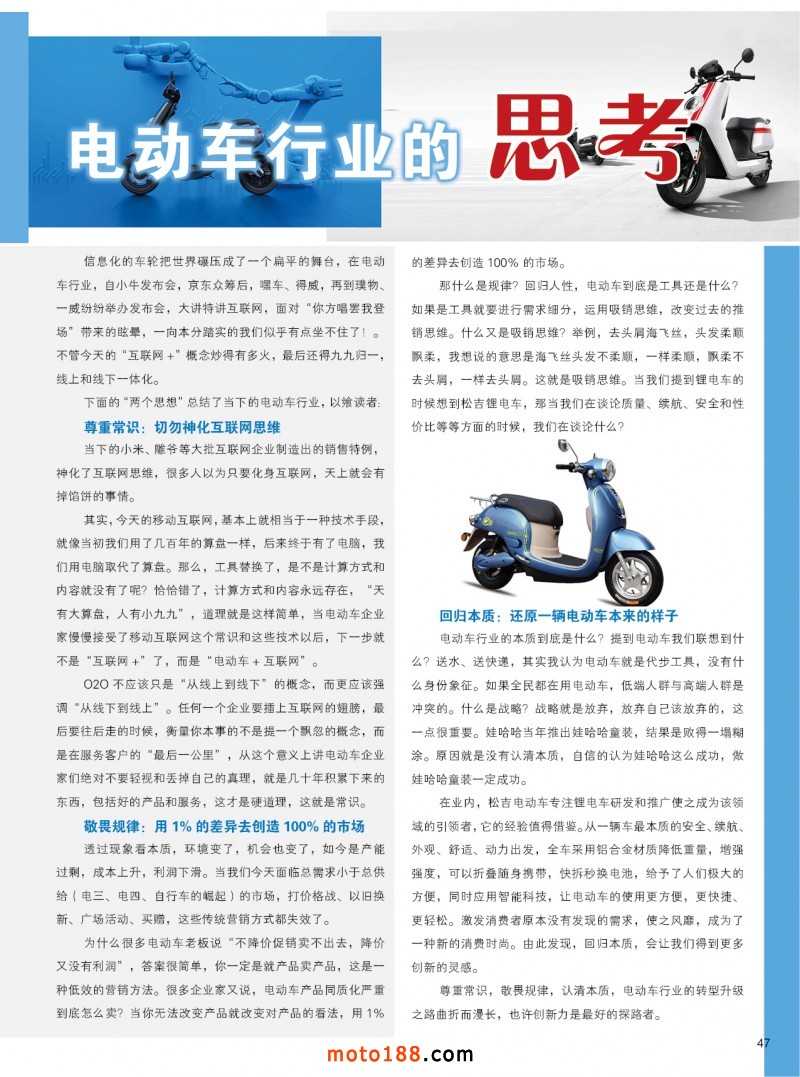 綜上所述,2019年我們將進(jìn)行兩項重大變革:以定位摩托車配件內(nèi)容為主體的《摩托車與配件》,將變更成電動摩托與配件為主體《電摩與配件》;傳統(tǒng)紙媒為主的雜志,將變更為以互聯(lián)網(wǎng)+紙媒雜志,并以互聯(lián)網(wǎng)+新媒體為主。具體的舉措為: