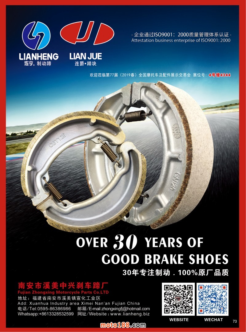 2019.5月《摩托車/電動(dòng)車與配件》雜志,歡迎大家閱讀日期:2019-05-08 點(diǎn)擊:1855 查看原圖 全部展開![]() ![]() ![]() 內(nèi)73 南安市溪美中興剎車蹄廠