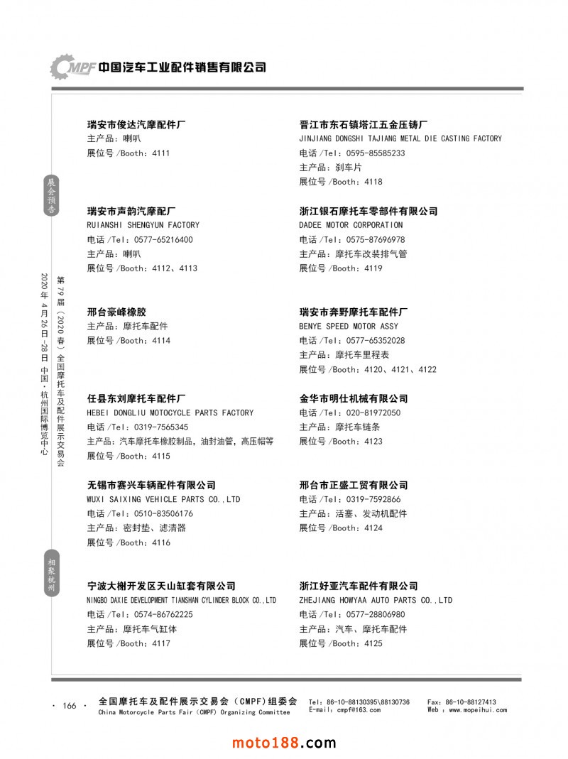 內(nèi)79-172 第78屆(2019秋)全國(guó)摩托車及配件展示交易會(huì)-廣州站參展企業(yè)信息