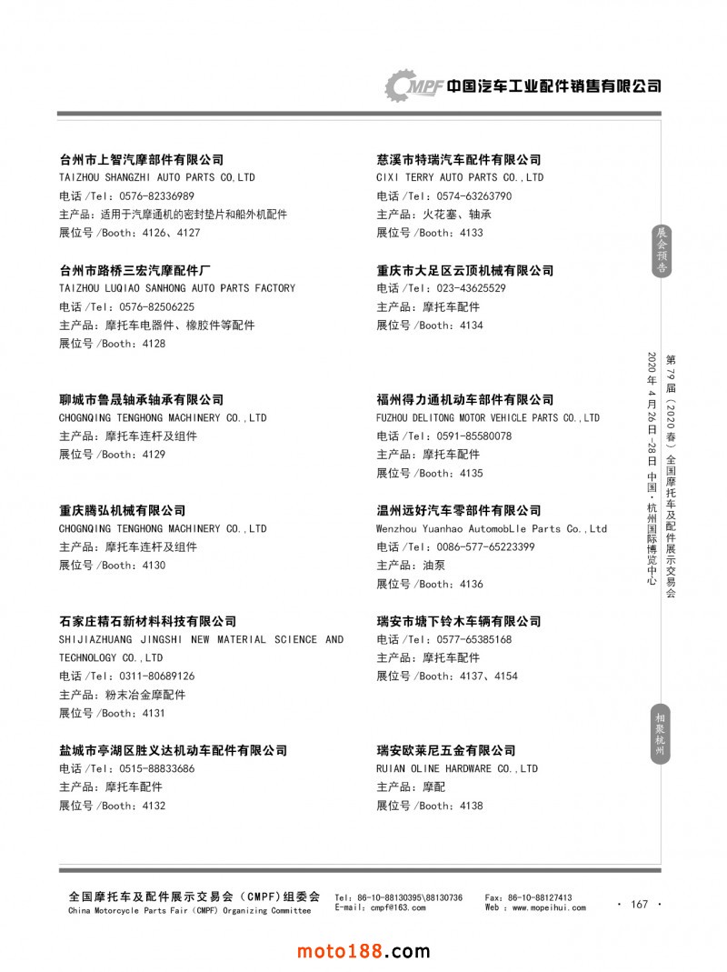 內79-172 第78屆(2019秋)全國摩托車及配件展示交易會-廣州站參展企業(yè)信息
