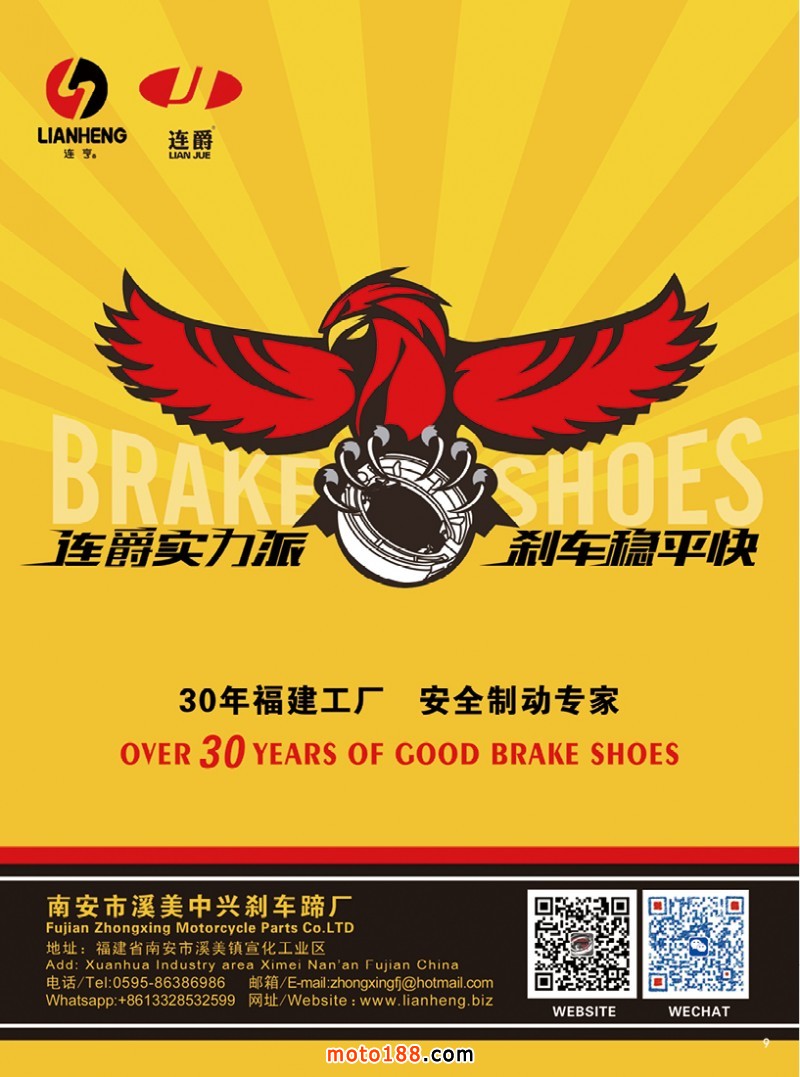 第18屆中國國際摩托車博覽會將于9月19-22日在重慶國際博覽中心舉行,本期雜志除正常發(fā)行之外,還將在重慶摩博會上發(fā)行。同時我們將做好終極版的《電摩與配件》11月雜志,以及廣州摩配會的《會刊》,善始善終,以完美的結(jié)局進行收尾,不負行業(yè)不負你,不忘初心方得始終。