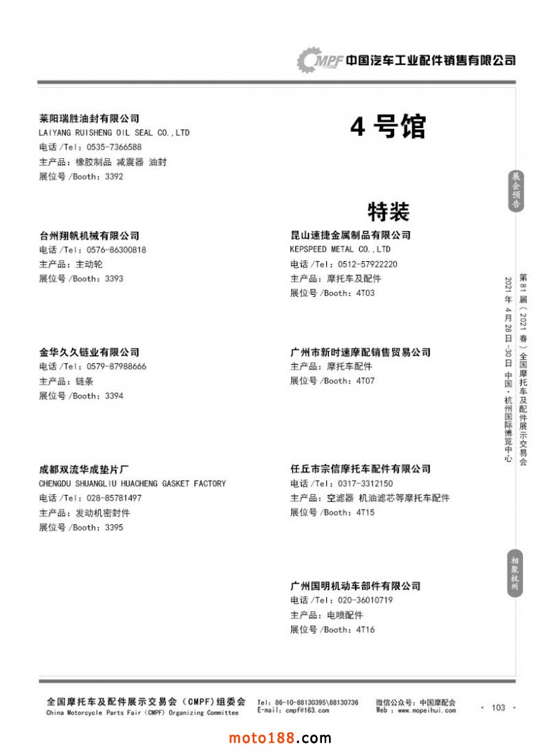 內(nèi)103 第80屆(2020秋)全國(guó)摩托車(chē)及配件展示交易會(huì)-廣州站參展企業(yè)信息