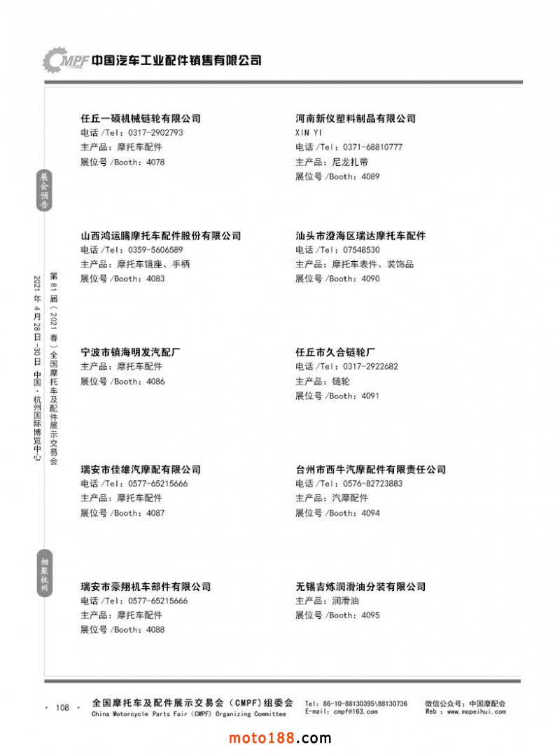 內(nèi)108 第80屆(2020秋)全國摩托車及配件展示交易會-廣州站參展企業(yè)信息