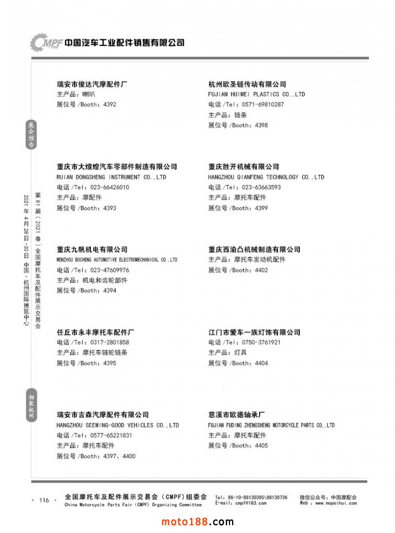 內(nèi)116 第80屆(2020秋)全國摩托車及配件展示交易會-廣州站參展企業(yè)信息