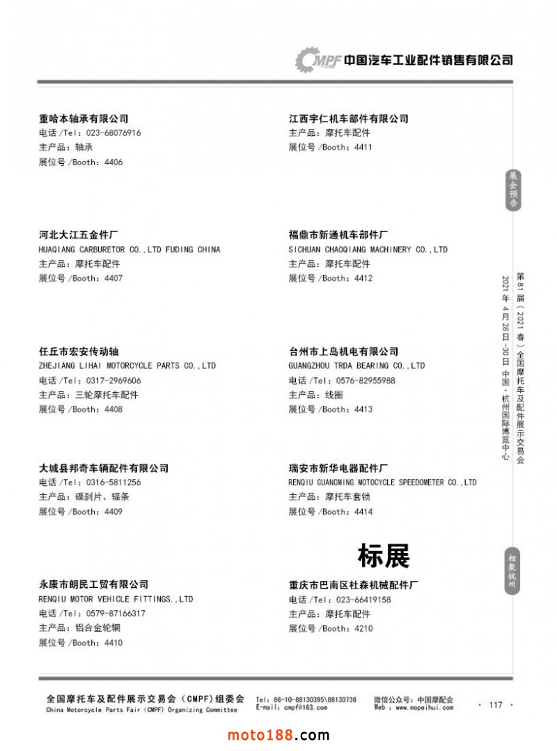 內(nèi)117 第80屆(2020秋)全國摩托車及配件展示交易會-廣州站參展企業(yè)信息