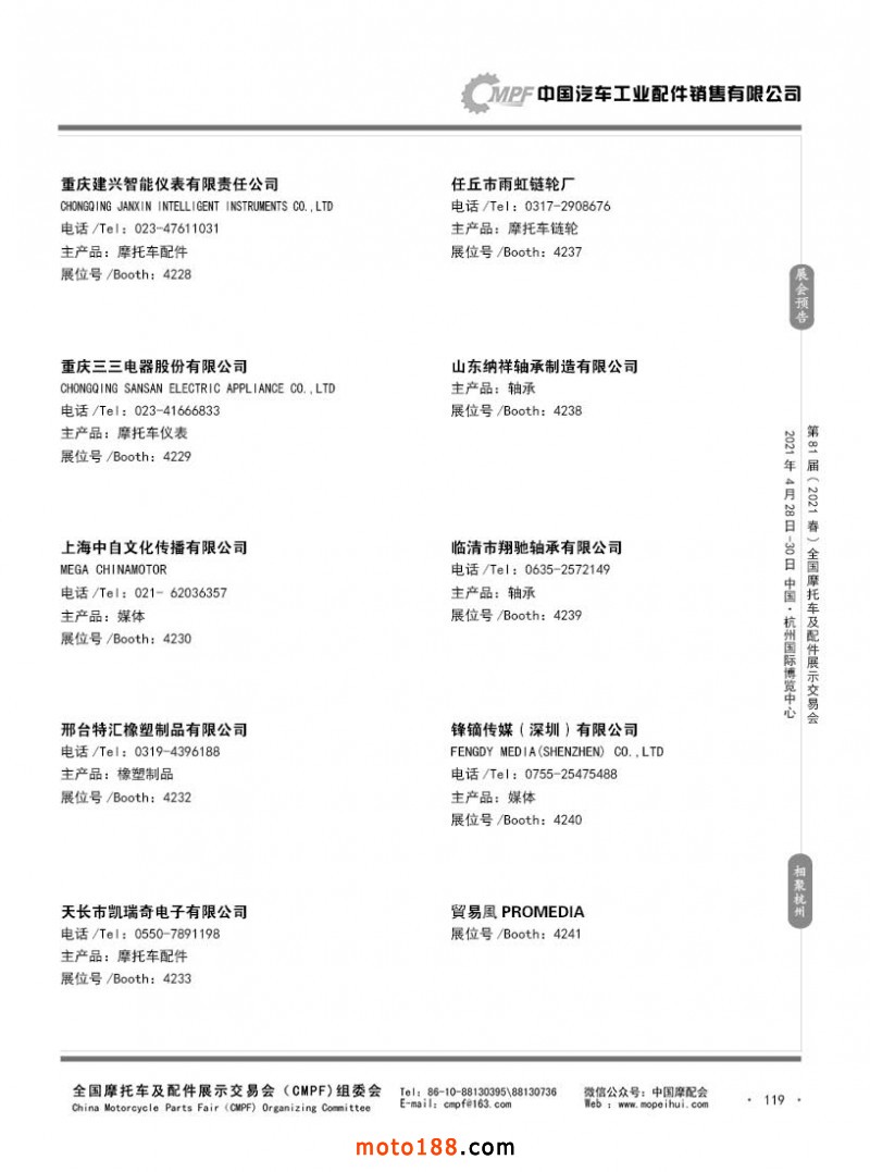 內(nèi)119 第80屆(2020秋)全國摩托車及配件展示交易會-廣州站參展企業(yè)信息