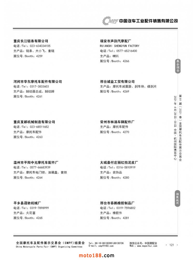 內121 第80屆(2020秋)全國摩托車及配件展示交易會-廣州站參展企業(yè)信息