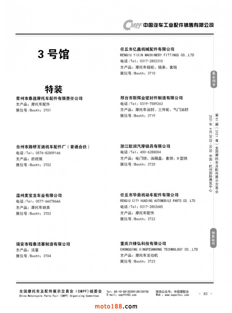 內(nèi)83 第80屆(2020秋)全國摩托車及配件展示交易會-廣州站參展企業(yè)信息