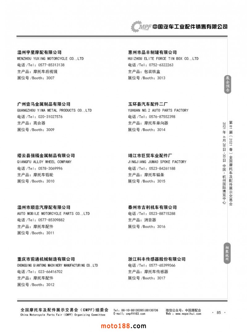 內(nèi)85 第80屆(2020秋)全國摩托車及配件展示交易會-廣州站參展企業(yè)信息
