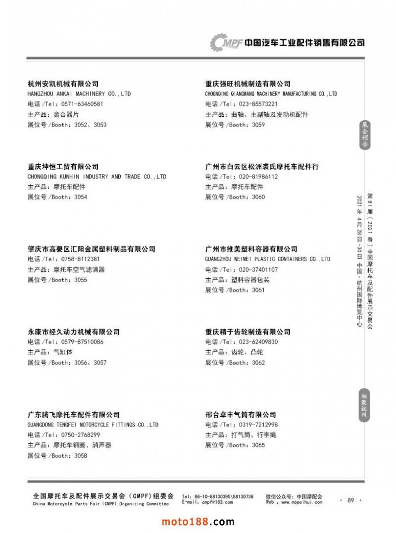 內(nèi)89 第80屆(2020秋)全國(guó)摩托車(chē)及配件展示交易會(huì)-廣州站參展企業(yè)信息