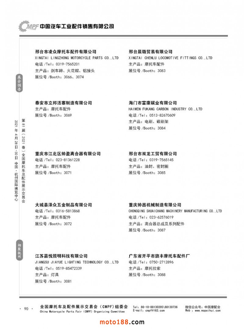 內(nèi)90 第80屆(2020秋)全國摩托車及配件展示交易會-廣州站參展企業(yè)信息