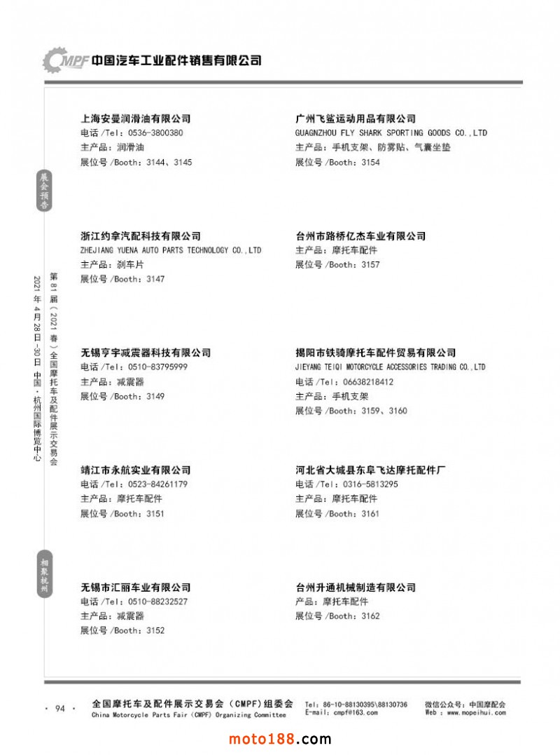 內(nèi)94 第80屆(2020秋)全國摩托車及配件展示交易會-廣州站參展企業(yè)信息