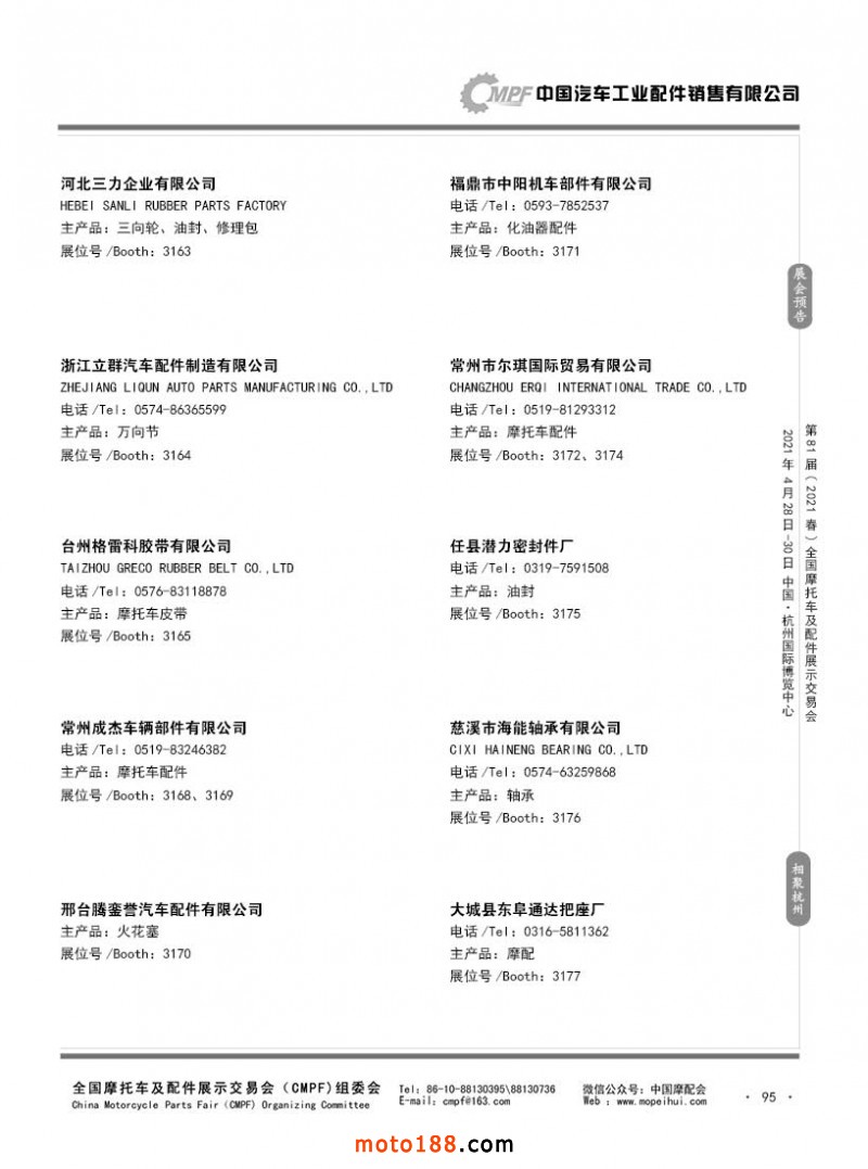 內(nèi)95 第80屆(2020秋)全國摩托車及配件展示交易會(huì)-廣州站參展企業(yè)信息