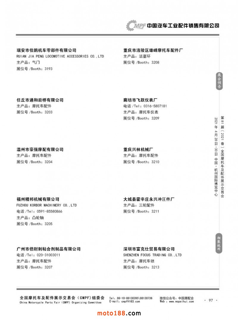 內(nèi)97 第80屆(2020秋)全國摩托車及配件展示交易會(huì)-廣州站參展企業(yè)信息