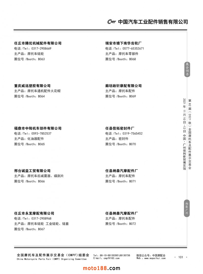 內(nèi)101 第81屆(2021春)全國摩托車及配件展示交易會-杭州站參展企業(yè)信息