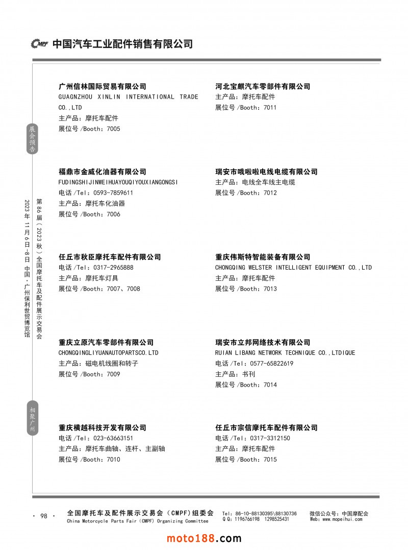 內(nèi)80-176 第85屆(2023春)全國摩托車及配件展示交易會-重慶站參展企業(yè)信息